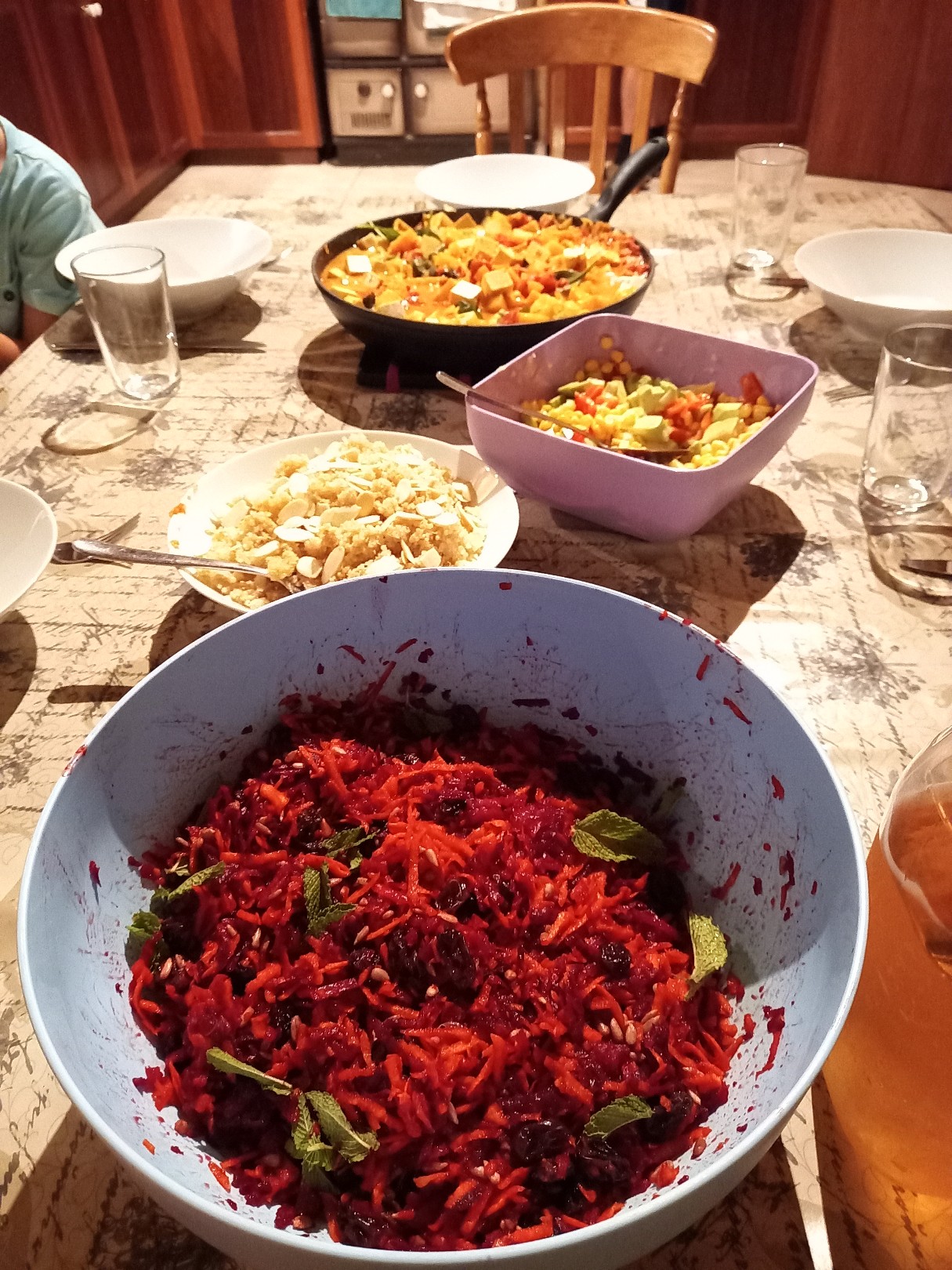 Nochmals eine kleine schwarze Prinzessin. Luna, unser Mondkalb – schwarz wie die Nacht und offenbar mondsüchtig 😉 Ich musste aber leider gehen und nochmals einen Tag lang gas geben. Schaut mal all die gesunden Sachen an, die Roland da immer wieder für uns zaubert. Und soooo fein! Wenn ich koche, hat es kaum Nährstoffe drin und wenn er kocht, dann in allen Farben.