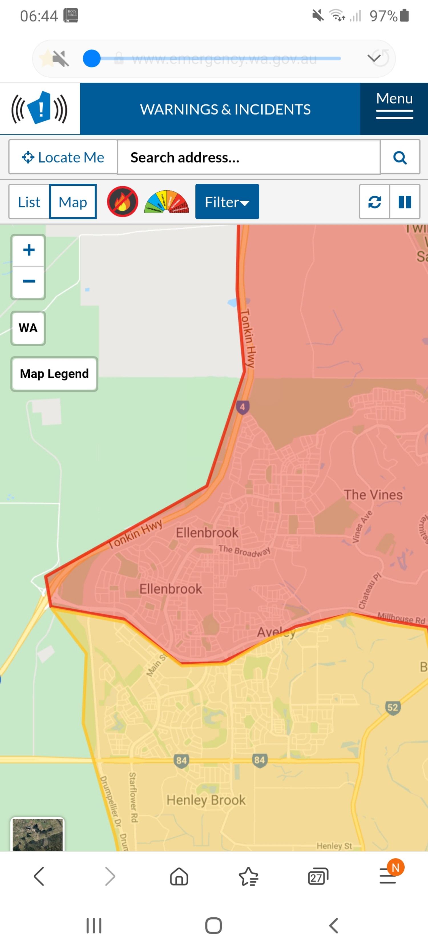 Wenn ihr solche Feuer oder Wetter jemals live nachverfolgen wollt, dann geht das über diese Webseite: https://www.emergency.wa.gov.au/ Ich gehe dann immer auf Maps und zoom in unsere Region. Nur schon wenn ich Rauch rieche, ist das das erste, was ich tue.