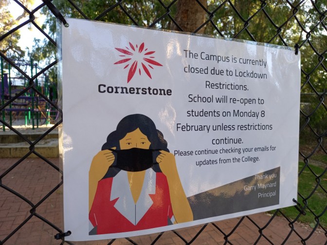 So kurz vor 2 erhielt ich eine SMS von meinem Chef in dem er von einem totalen Shut Down schrieb, von dem wir bestimmt schon alle gehört haben… ÄÄÄH…. NEIN?!?! Keine Ahnung… Gar nichts gehört… Wir wohnen im Bush… Jedenfalls hatte Westaustralien ja schon seit 10 Monaten keine COVID Übertragungen mehr. Die einzigen Fälle, die es in WA seither gab, waren Leute, die wieder eingereist sind und ohnehin im Hotel Quarantäne machen mussten. Insgesammt hatten die Kids 2 Tage weniger Schule als geplant. Ja am Anfang war einen Zeit, in der nicht mehr viele in der Schule waren, weil dazu aufgerufen wurde, zu Hause zu bleiben, wenn man konnte, aber wirklich zu war die Schule nie. Seit etwa einem halben Jahr ist alles wieder total normal hier. Das einzige, was wir müssen, ist uns einscännen, wenn wir irgendwo hin gehen, damit sie nachverfolgen könnten, wer wo war, falls es einen Fall hätte… Und jetzt plötzlich wurde ein Angestellter eines dieser Quarantäne-Hotels positiv getestet und der Premier hat sofort erklärt, dass in 5 Stunden (also abends um 6) ein 5-tägiger LockDown beginnt und dass man das Haus nur aus 4 Gründen verlassen darf und dann nur mit Maske. Wow! Armer Roland und armer Nick. Die waren kurz nach der Bekanntmachung im Aldi. Die Warteschlangen gingen bis zum hintersten Teil des Ladens… Jeder hatte wieder Panik.