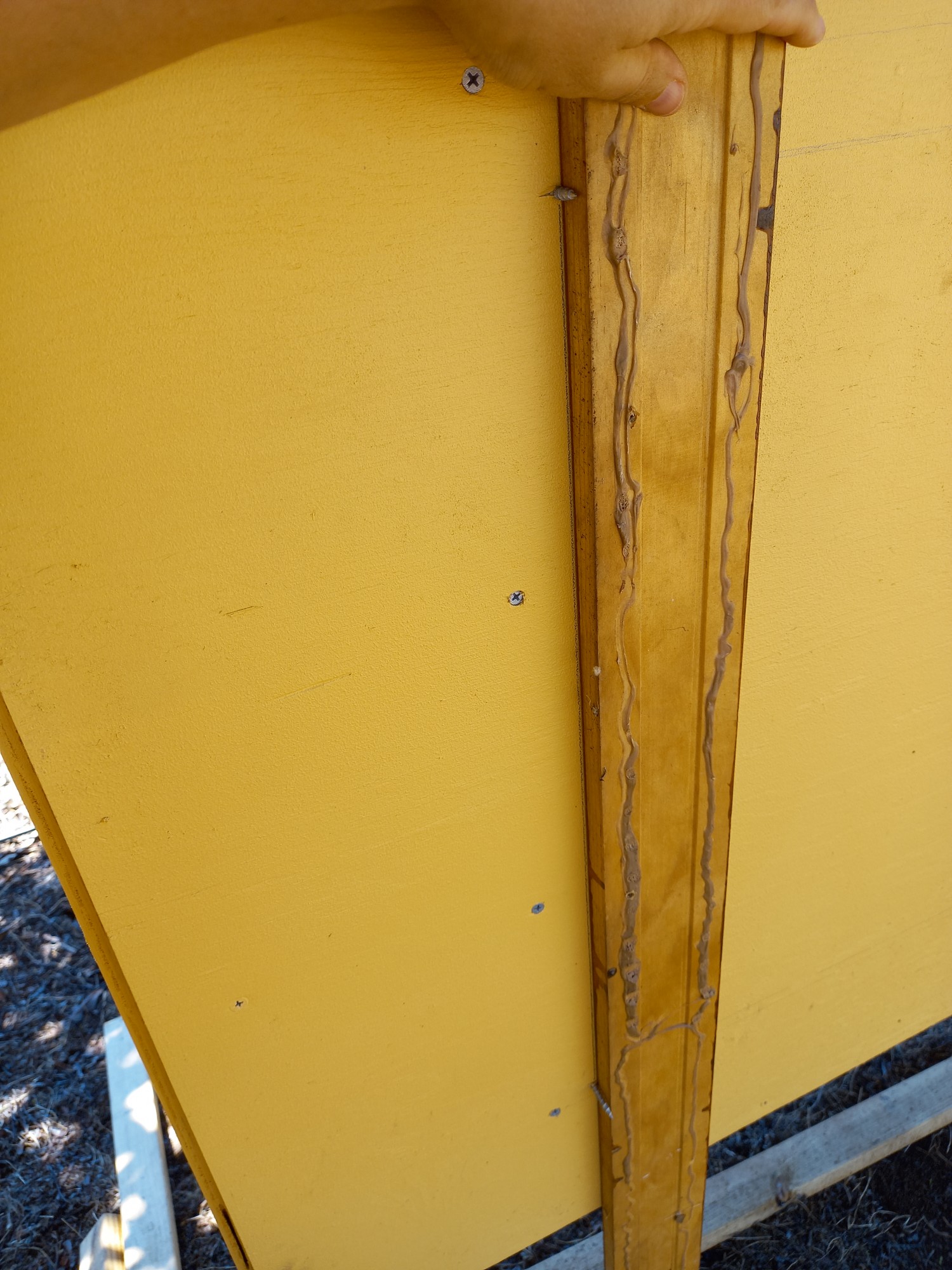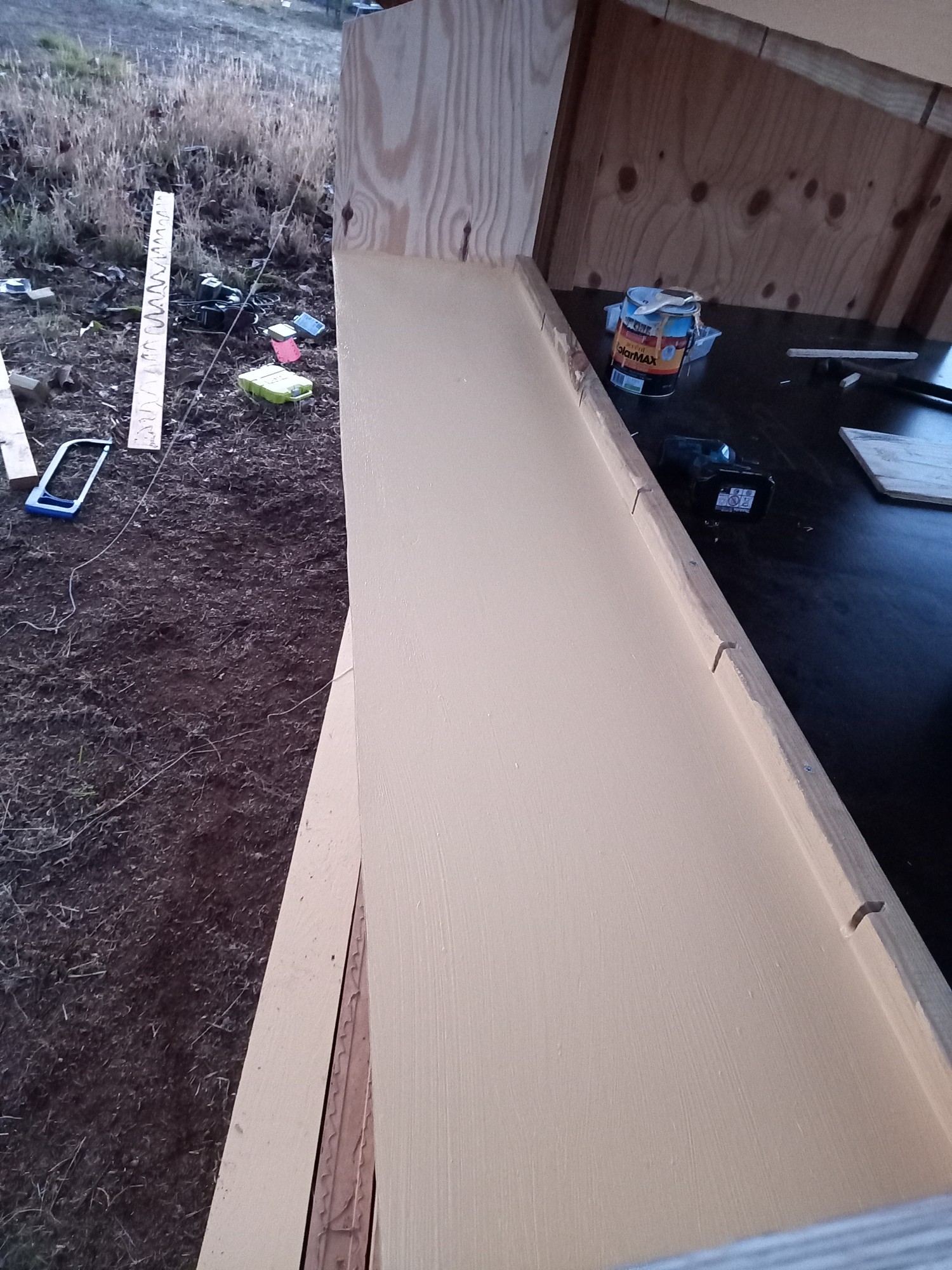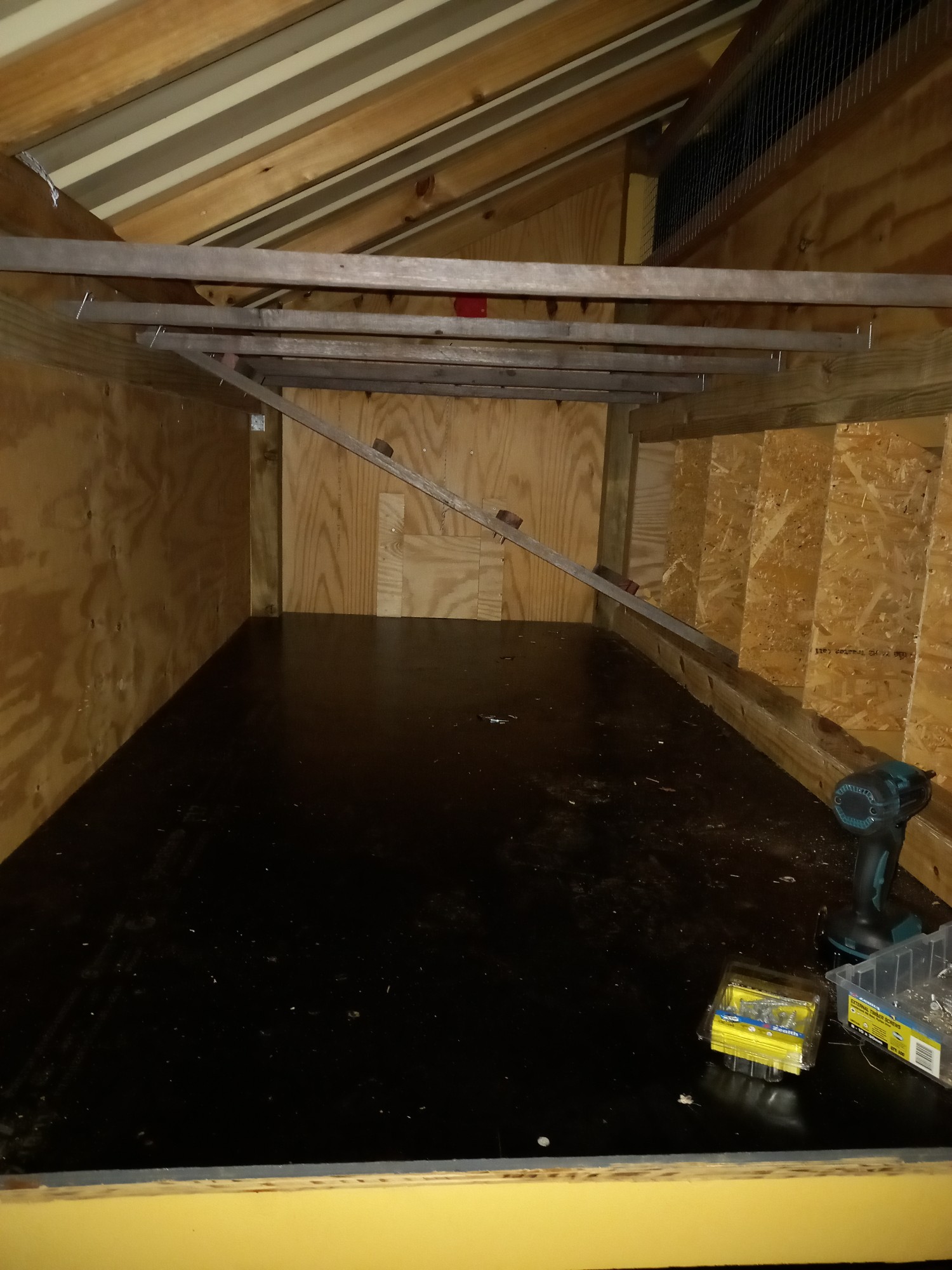 So, das Hühnerhaus musste fertig werden, denn die Wettervorhersage sagte Regen voraus und das Schnitzelholz oder wie man dem sagt sollte auf keinen Fall nass werden. Also musste das Dach noch her…