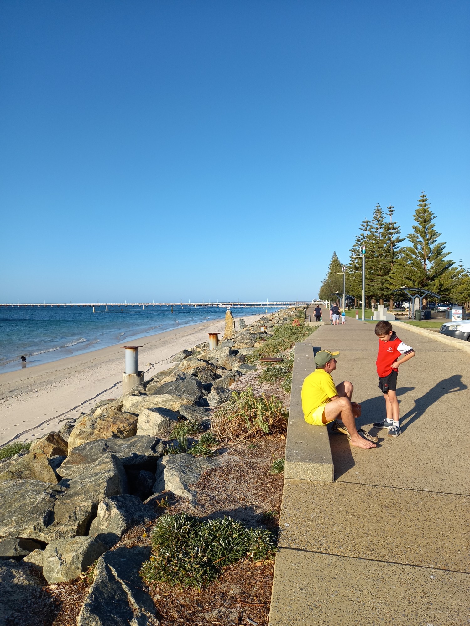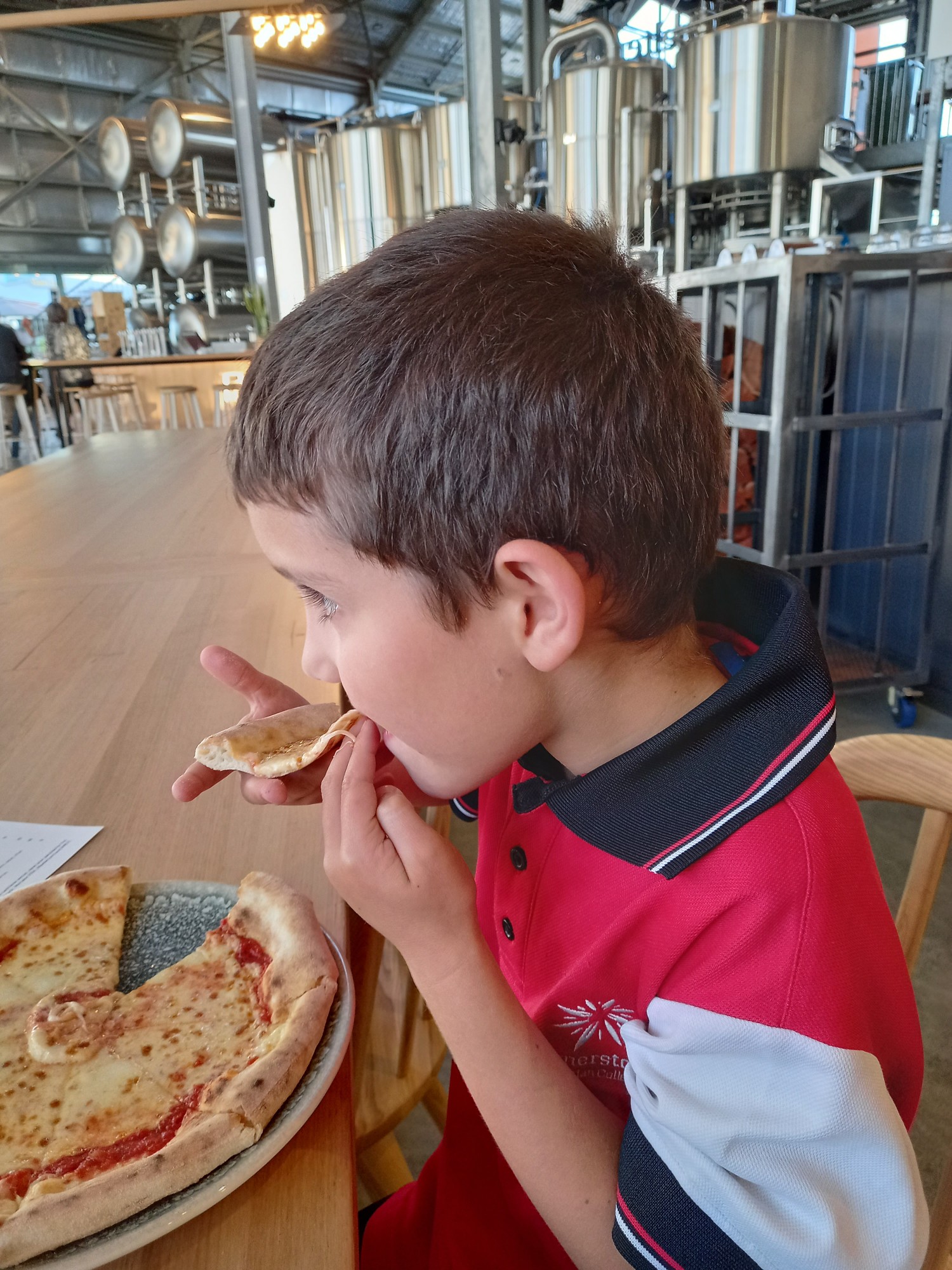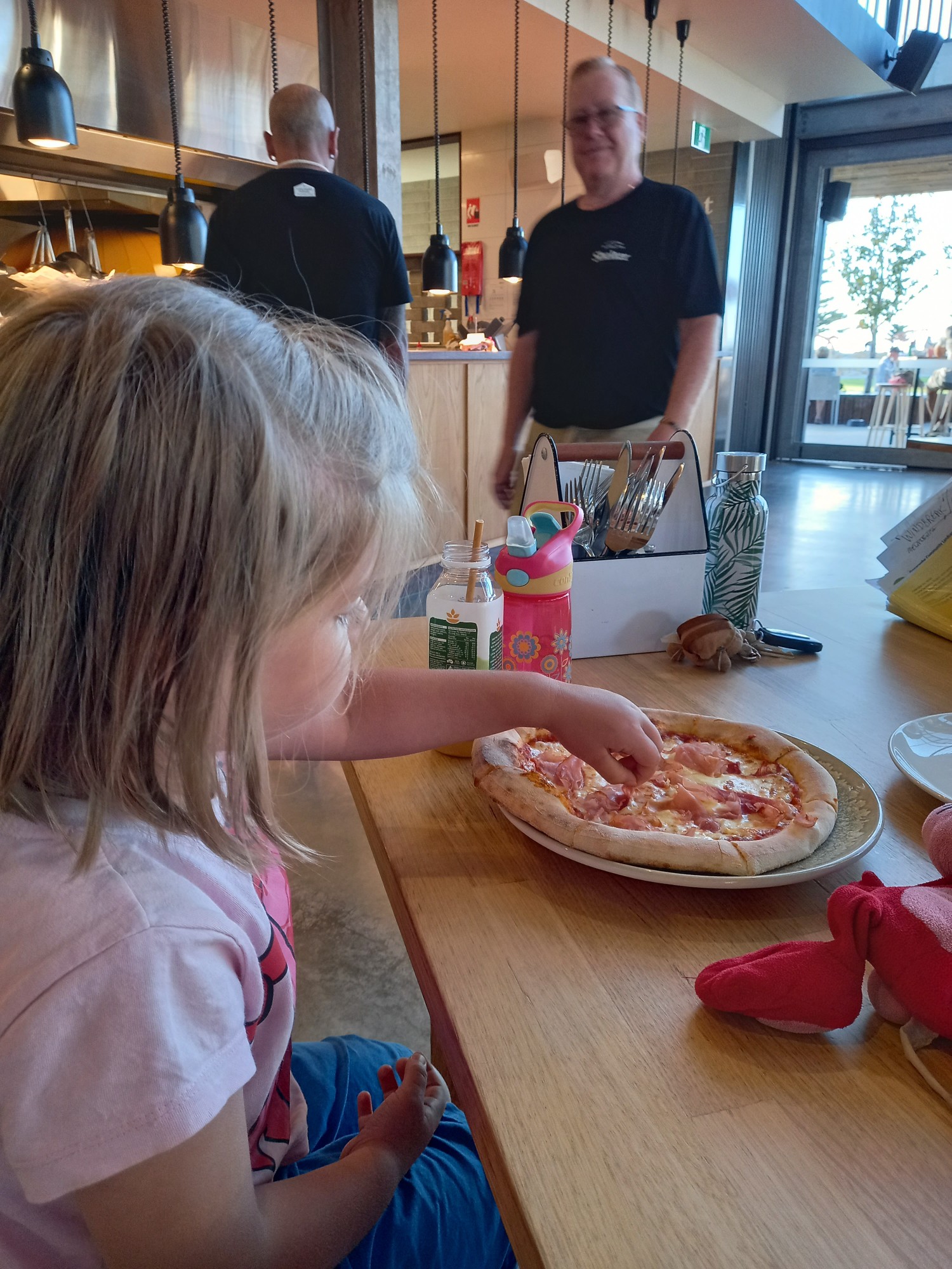 Keine Ahnung mehr, was hier der Anlass war, aber wir gingen nach der Schule mal auf einen Schwum im kühlen Meer und danach auf ein kühles Blondes und eine feine Pizza in der Shelter Brewery gleich beim Jetty.