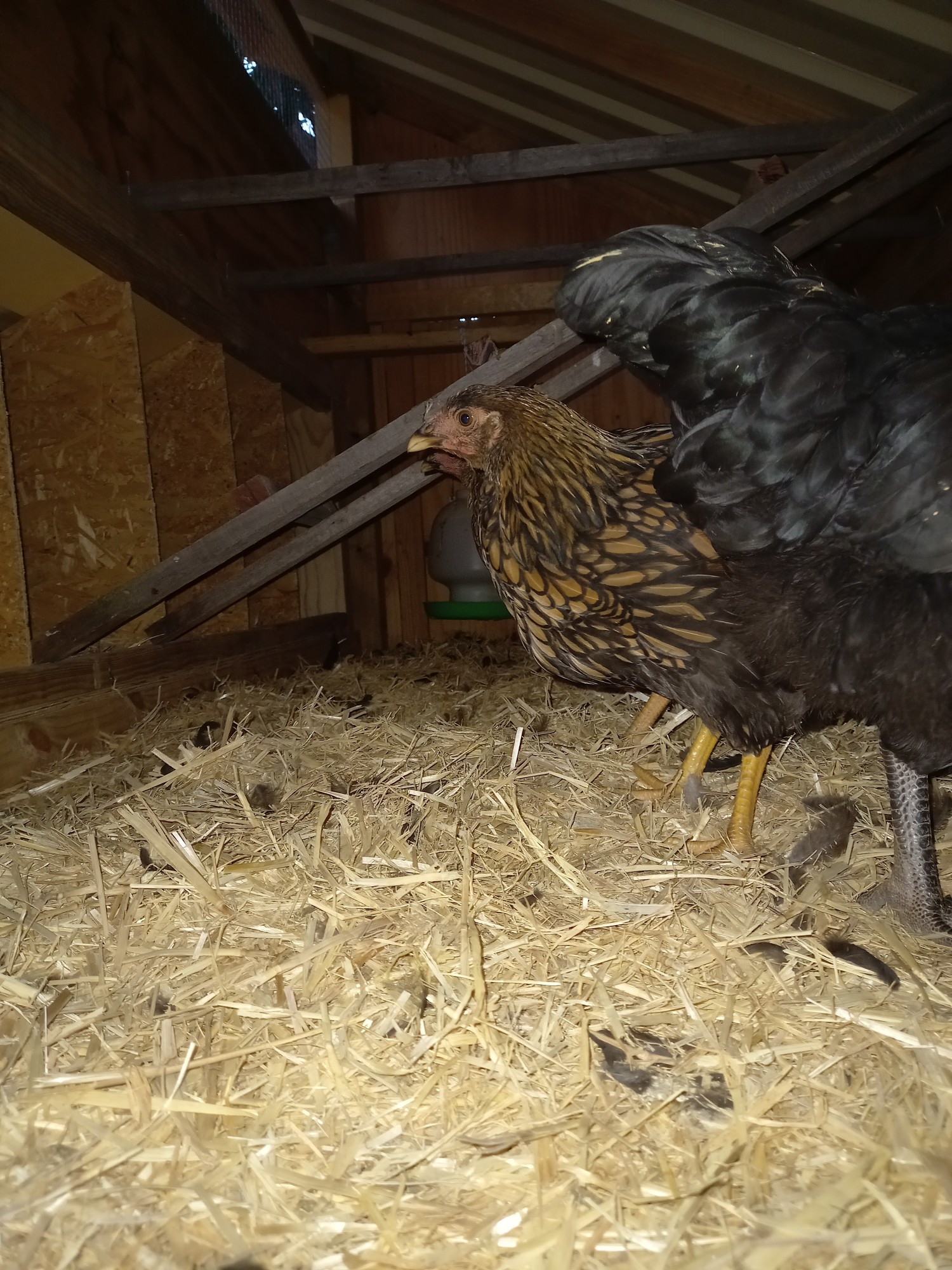 Zu Hause gabs dann noch etwas Stroh und Futter für Hühnerhaus. War gar nicht so einfach, die Hühner dazu zu bewegen, einzuziehen. Eigentlich wollten wir die Alten im neuen und die Jungen im alten Hühnerhaus, aber am Schluss waren es die Jungen, die eingezogen sind. Egal 🙂 Hauptsache es ist bewohnt.