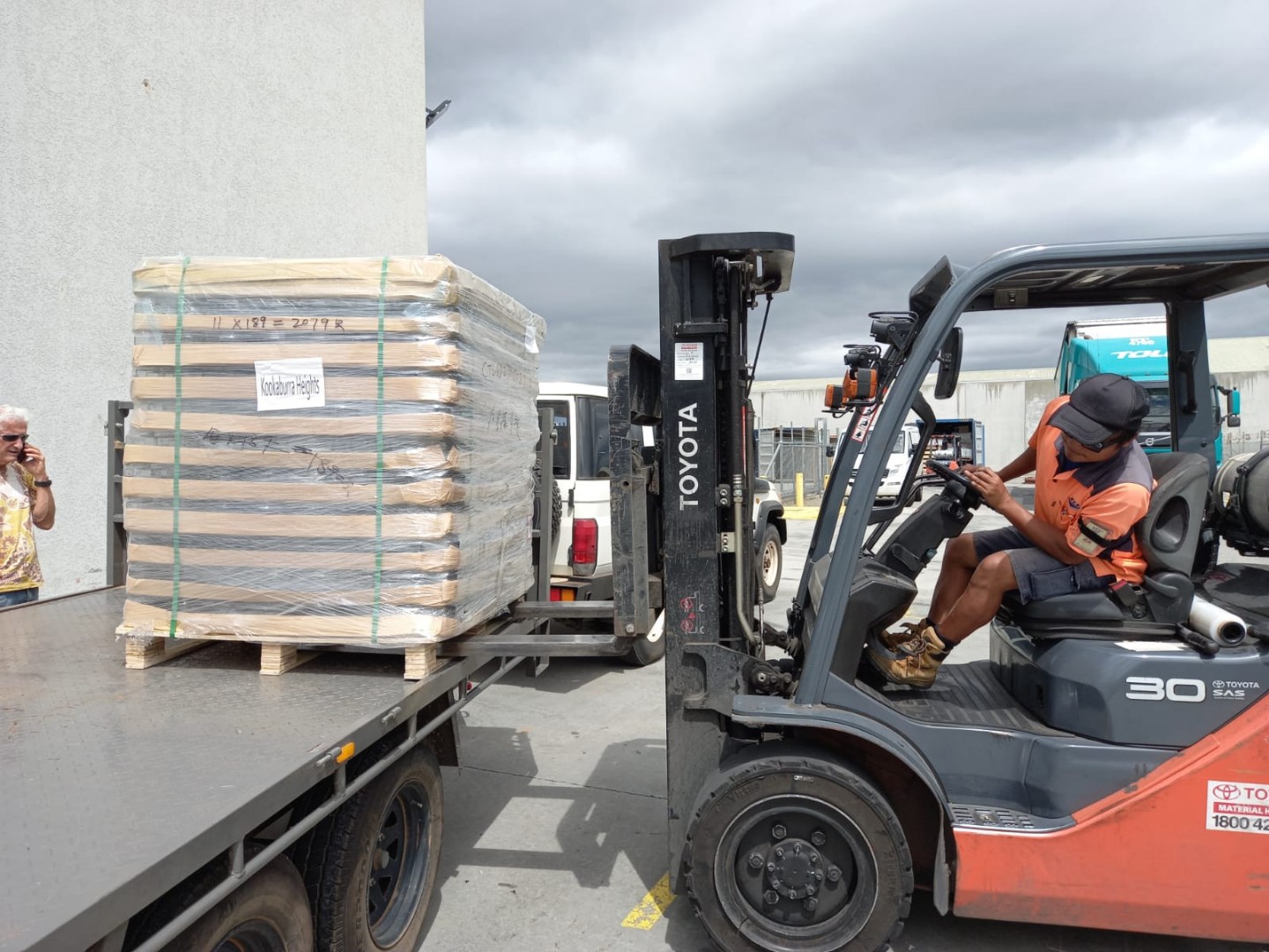 Am Freitag fuhren dann Roland, Joe, Nick und Samantha nach Perth um die erste Ladung Honiggläser abzuholen. Der Anhänger ware aber viel zu schwach für die ganze Ladung. Darum nahmen sie einmal die Hälfte mit. Ganz offenbar hatten sie Gott ganz nah bei sich auf dem Weg, denn nur ein paar Tage danach brachte jemand anders den Anhänger und bei dem ist er zusammen gebrochen. Gott sei Dank nicht bei uns.
