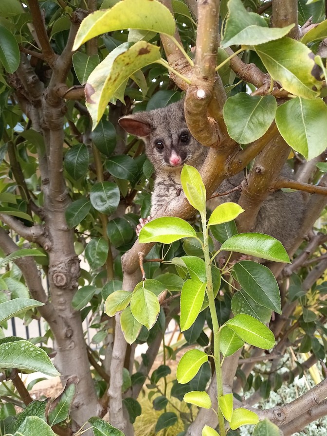 Das ist ein Bild, das ich in der Schule gemacht habe. Das ist unser kleines Schul-Possum. Es ist schon lange nicht mehr nachtaktiv. Dem gefällt es am Tage viel zu gut.
