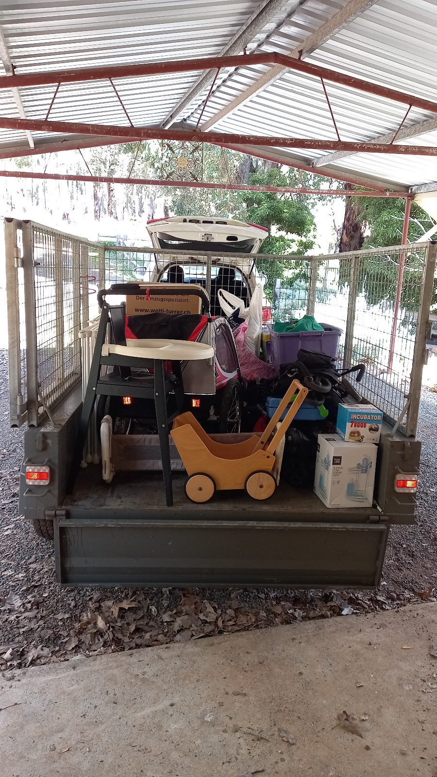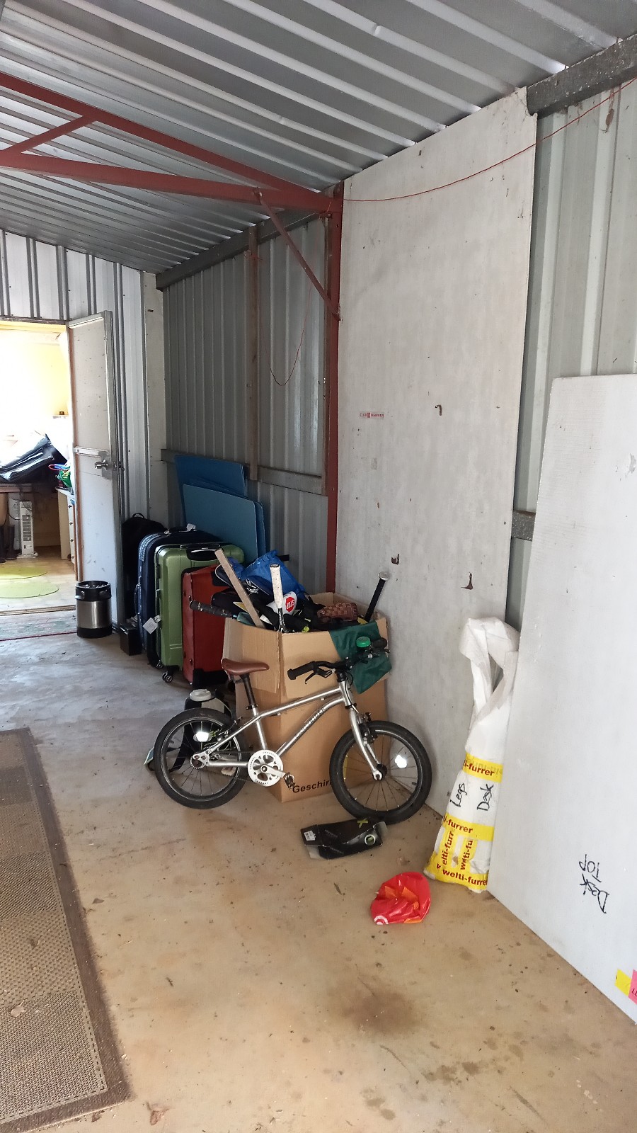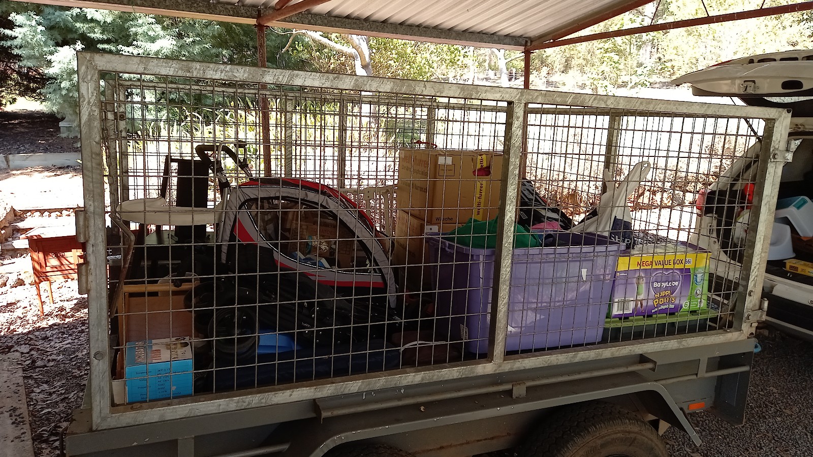 Die Kids hatten in der zweiten Ferienwoche ihren Schwimmkurs in Manjimup und am Dienstag füllten wir unseren Trailer mit lauter Sachen, fürs Broki, dass unsere Kirche dort führt. So wurde mal eine Wand im Shed wieder leer. Da kommt jetzt dann mal ein Gestell hin, damit wir dort auch etwas Ordnung machen können. Ich habe dann noch unsere Reisekoffer durchsucht, denn uns fehlen seit dem Flug Taschenmesser und UNO Junior Karten, die wir extra in der Schweiz gekauft haben… Ich dachte, dass die vielleicht noch in einem Koffer in irgend einem Fach sein könnten, aber das waren sie nicht. Aber dafür fand ich da etwas anderes. Irgendwie ging Samanthas kleiner Koffer in den Shed bevor er ausgepackt war. Da hat isch aber jemand gefreut, dass ihr Hase wieder zum Vorschein kam.