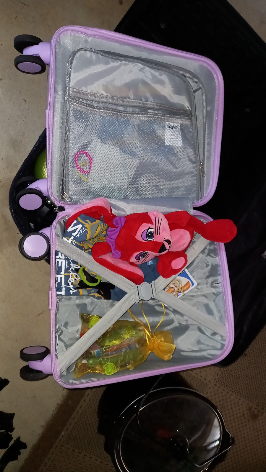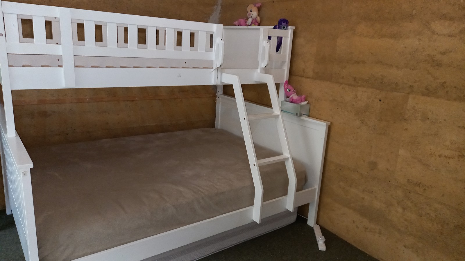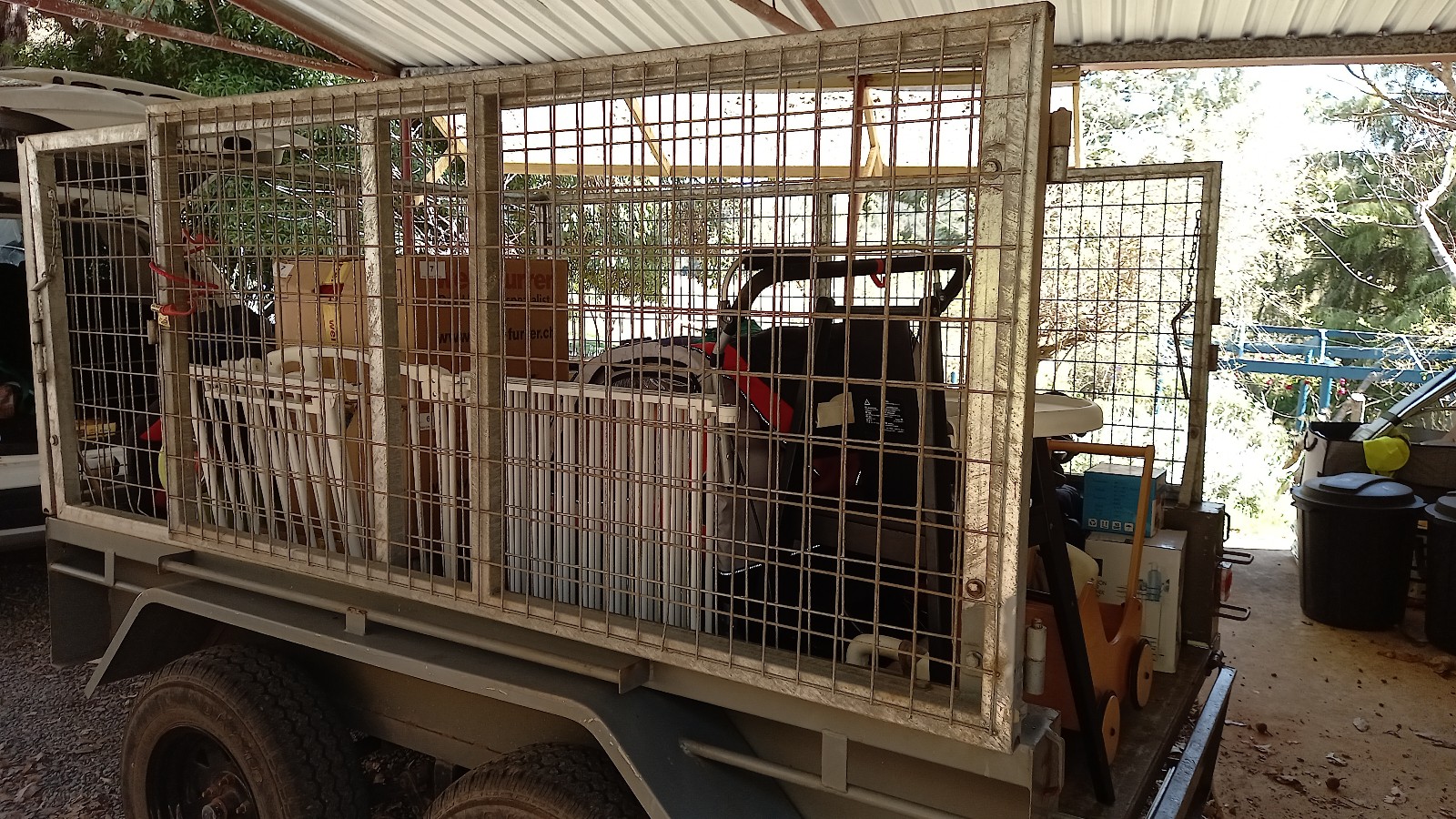 Die Kids hatten in der zweiten Ferienwoche ihren Schwimmkurs in Manjimup und am Dienstag füllten wir unseren Trailer mit lauter Sachen, fürs Broki, dass unsere Kirche dort führt. So wurde mal eine Wand im Shed wieder leer. Da kommt jetzt dann mal ein Gestell hin, damit wir dort auch etwas Ordnung machen können. Ich habe dann noch unsere Reisekoffer durchsucht, denn uns fehlen seit dem Flug Taschenmesser und UNO Junior Karten, die wir extra in der Schweiz gekauft haben… Ich dachte, dass die vielleicht noch in einem Koffer in irgend einem Fach sein könnten, aber das waren sie nicht. Aber dafür fand ich da etwas anderes. Irgendwie ging Samanthas kleiner Koffer in den Shed bevor er ausgepackt war. Da hat isch aber jemand gefreut, dass ihr Hase wieder zum Vorschein kam.