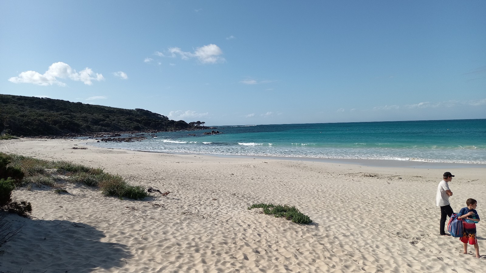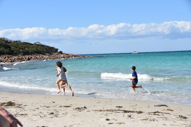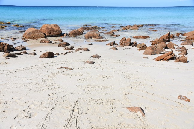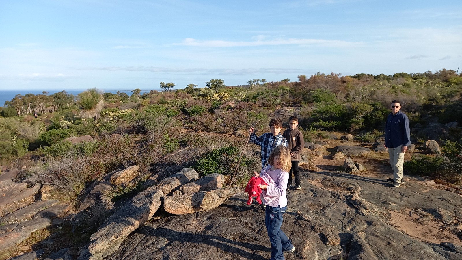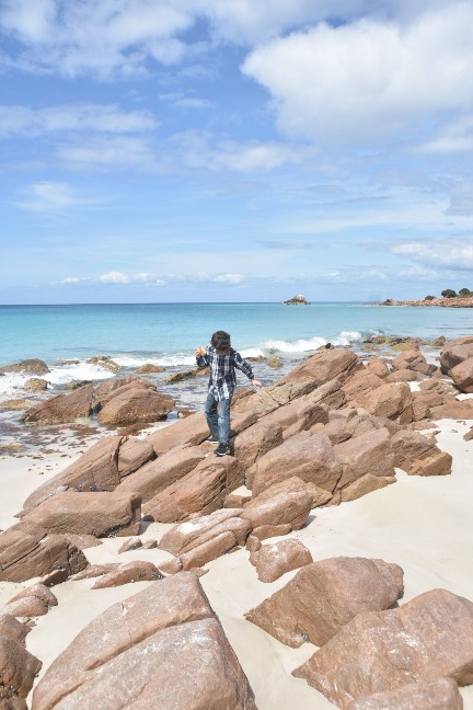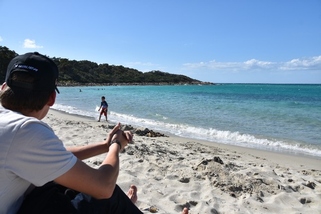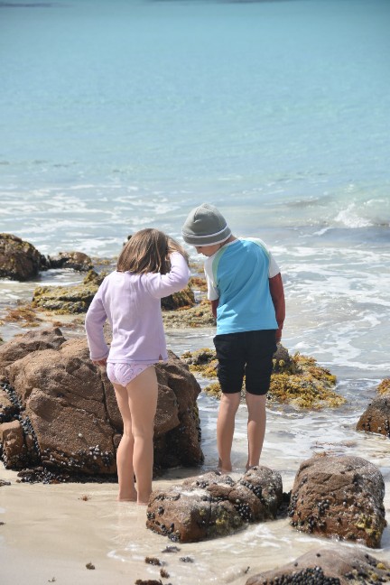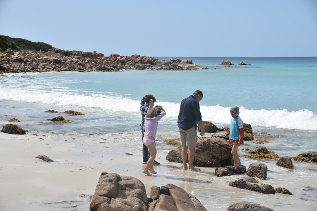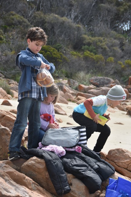 Das war wieder einmal ein wunderschöner Samstag. Zuerst gingen wir in die Kirche und hatten einen super Gottesdienst, der auf Kinder ausgelegt war. Denen gefällts wirklich viel besser, seit wir wieder in Busselton sind. Anschliessend gab es noch ein gemeinsames Mittagessen und dann gings los in Richtung Cape Naturaliste. Zuerst stoppten wir an der Meelup Beach, doch dort war es furchtbar winding (aber trotzdem wunderschön).