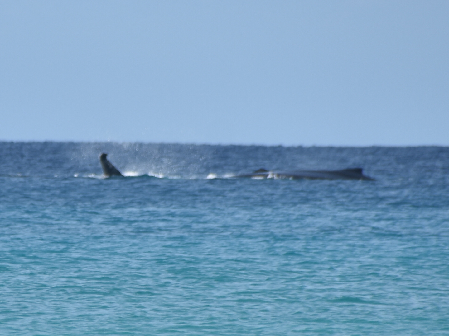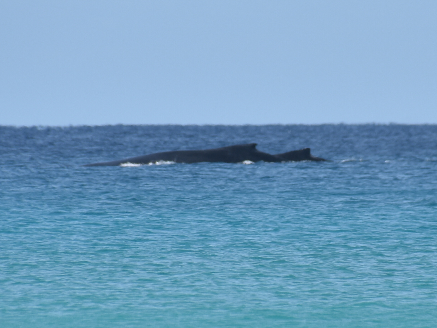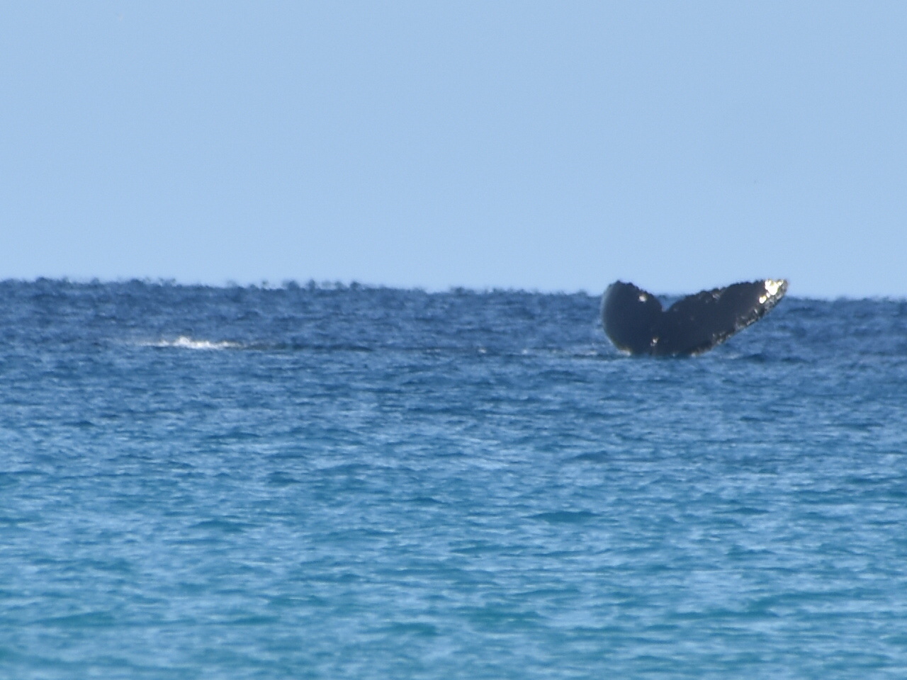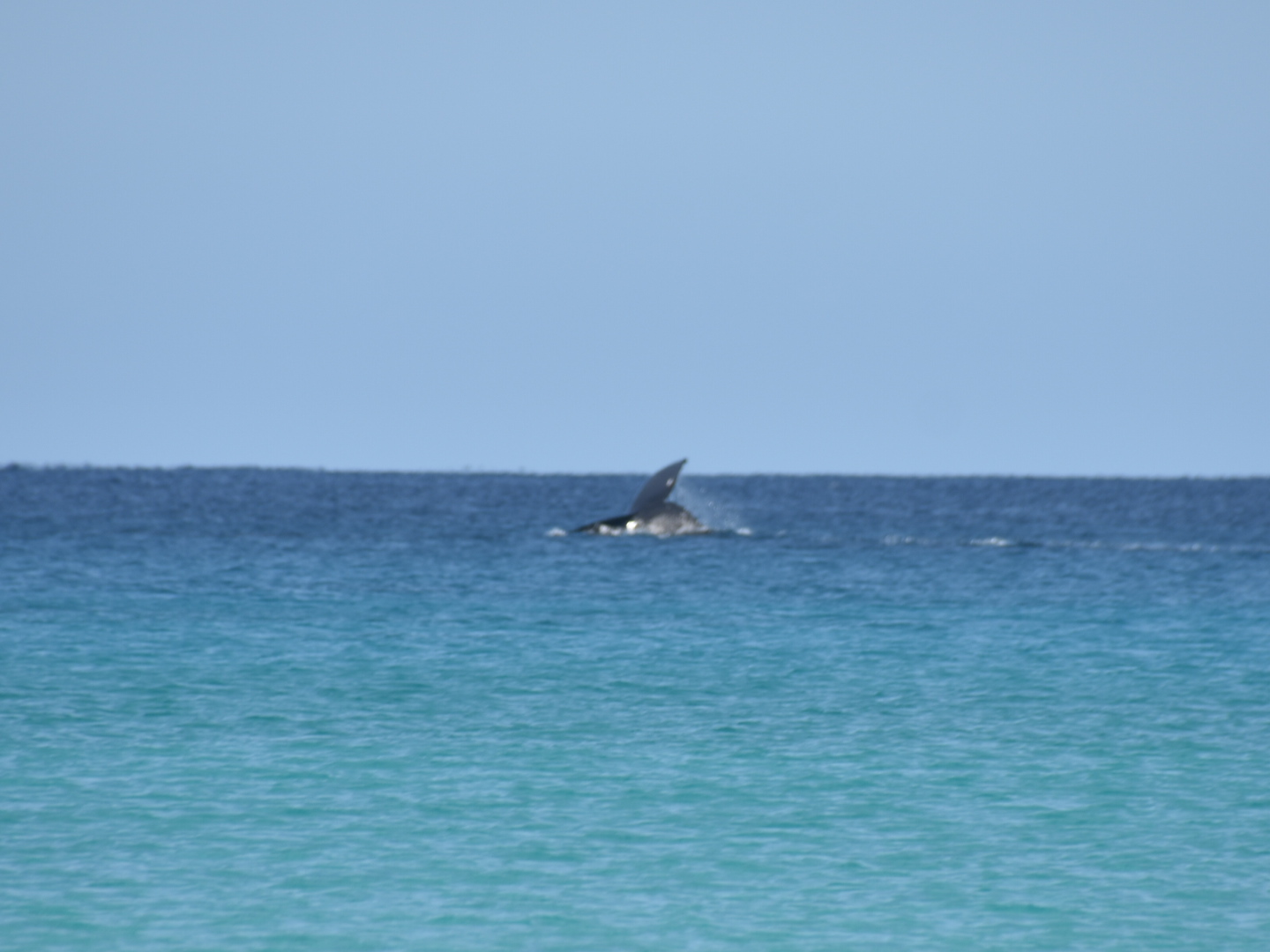 Aber das Highlight waren all die Wale, die zurzeit in der Bucht migrieren und dort mit ihren Kälbern herumspielen. Das sind Fotos von Buckelwalen. Die Flosse oben, sieht super klein aus, aber da ist ein riesiger Wal darunter.