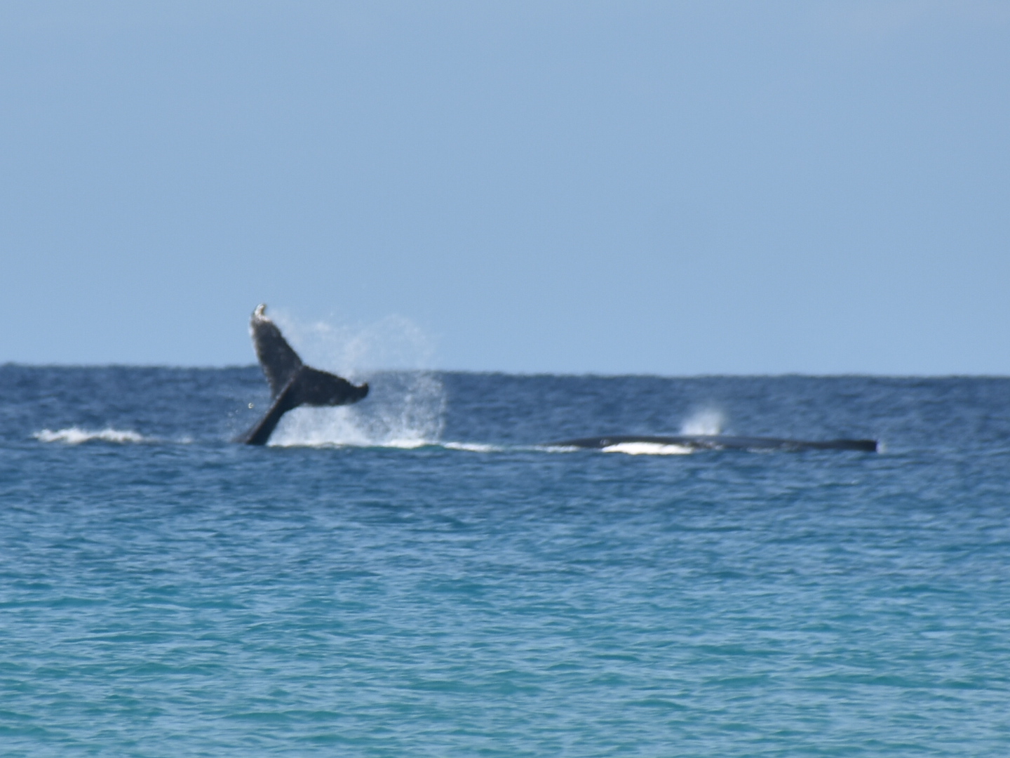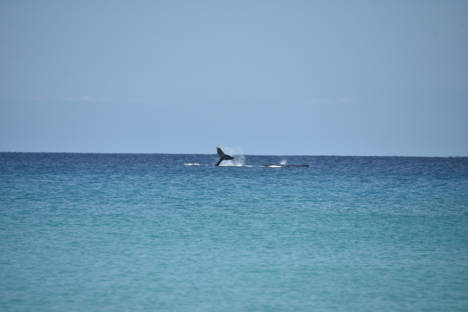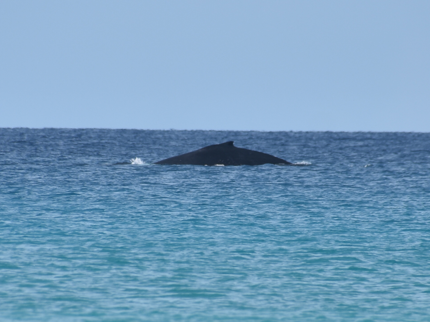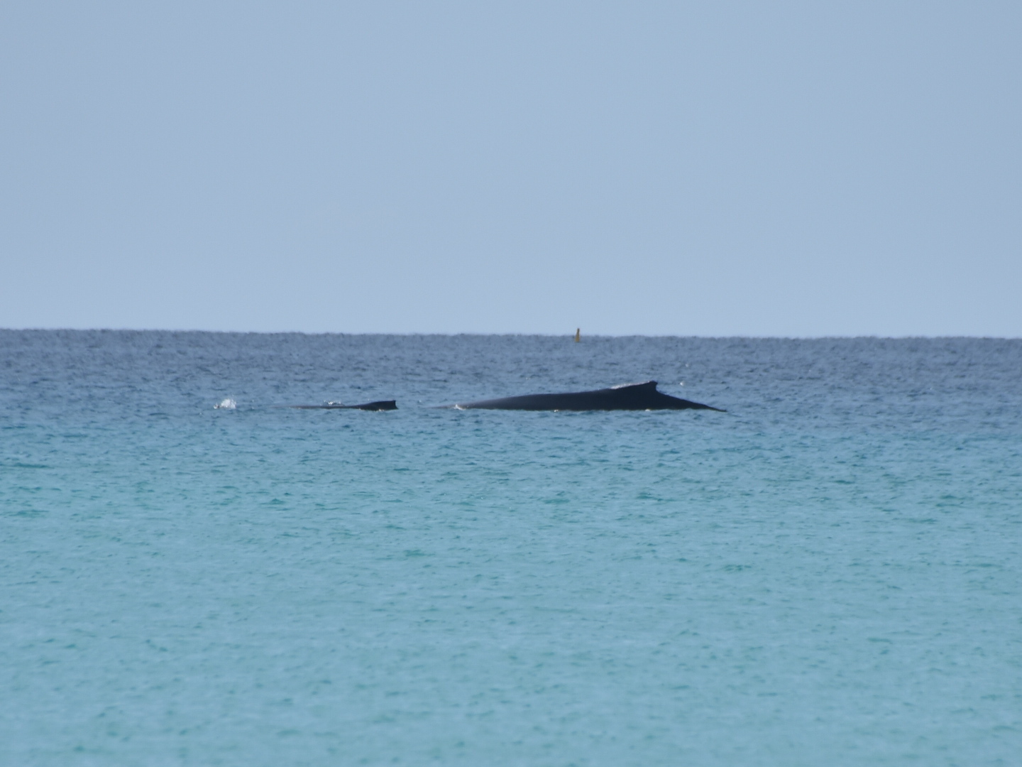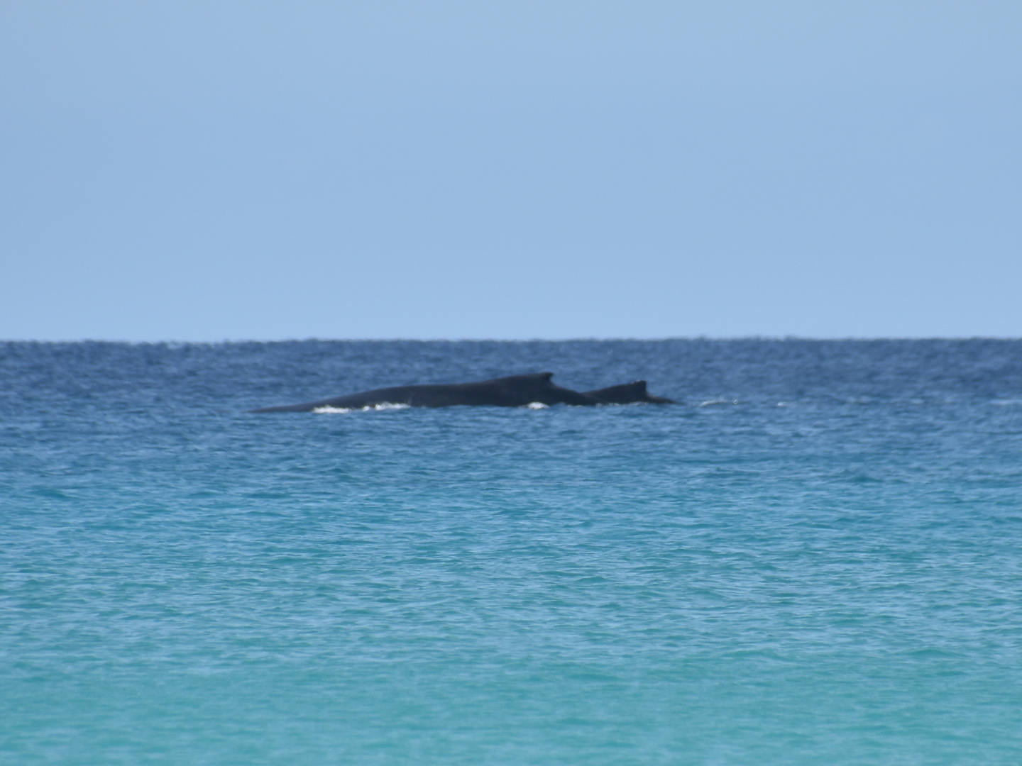 Aber das Highlight waren all die Wale, die zurzeit in der Bucht migrieren und dort mit ihren Kälbern herumspielen. Das sind Fotos von Buckelwalen. Die Flosse oben, sieht super klein aus, aber da ist ein riesiger Wal darunter.