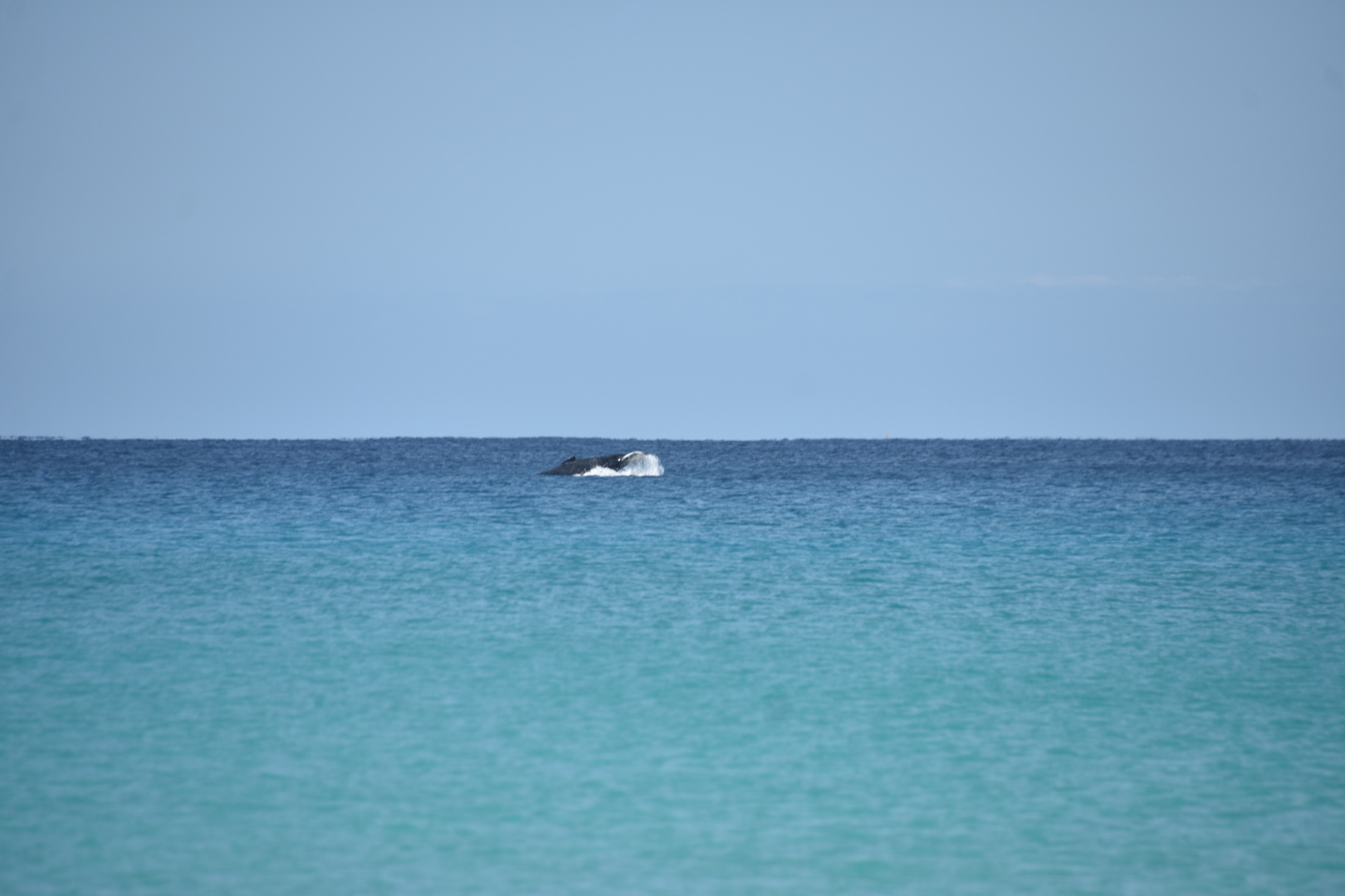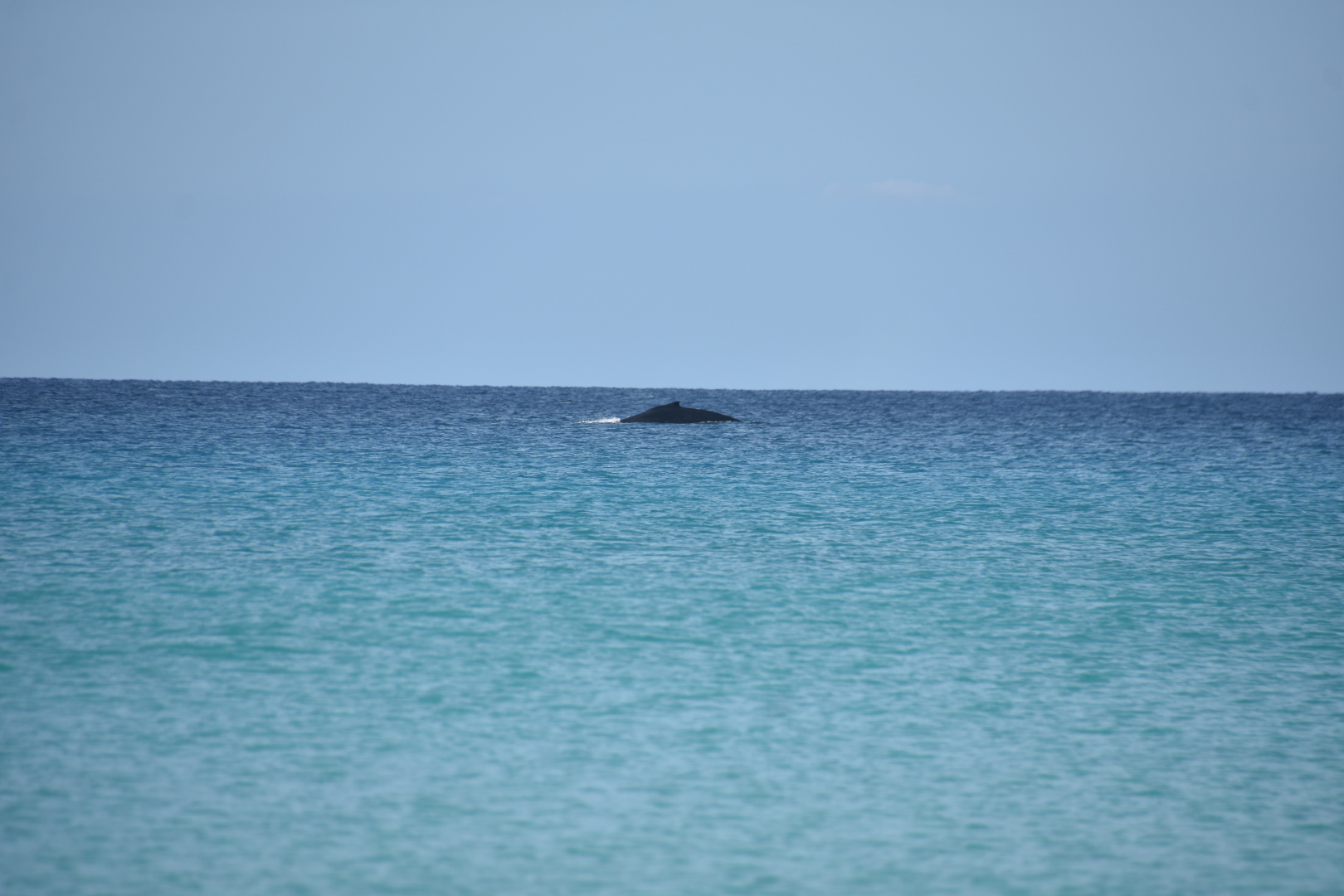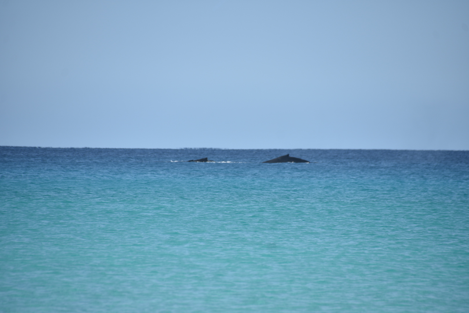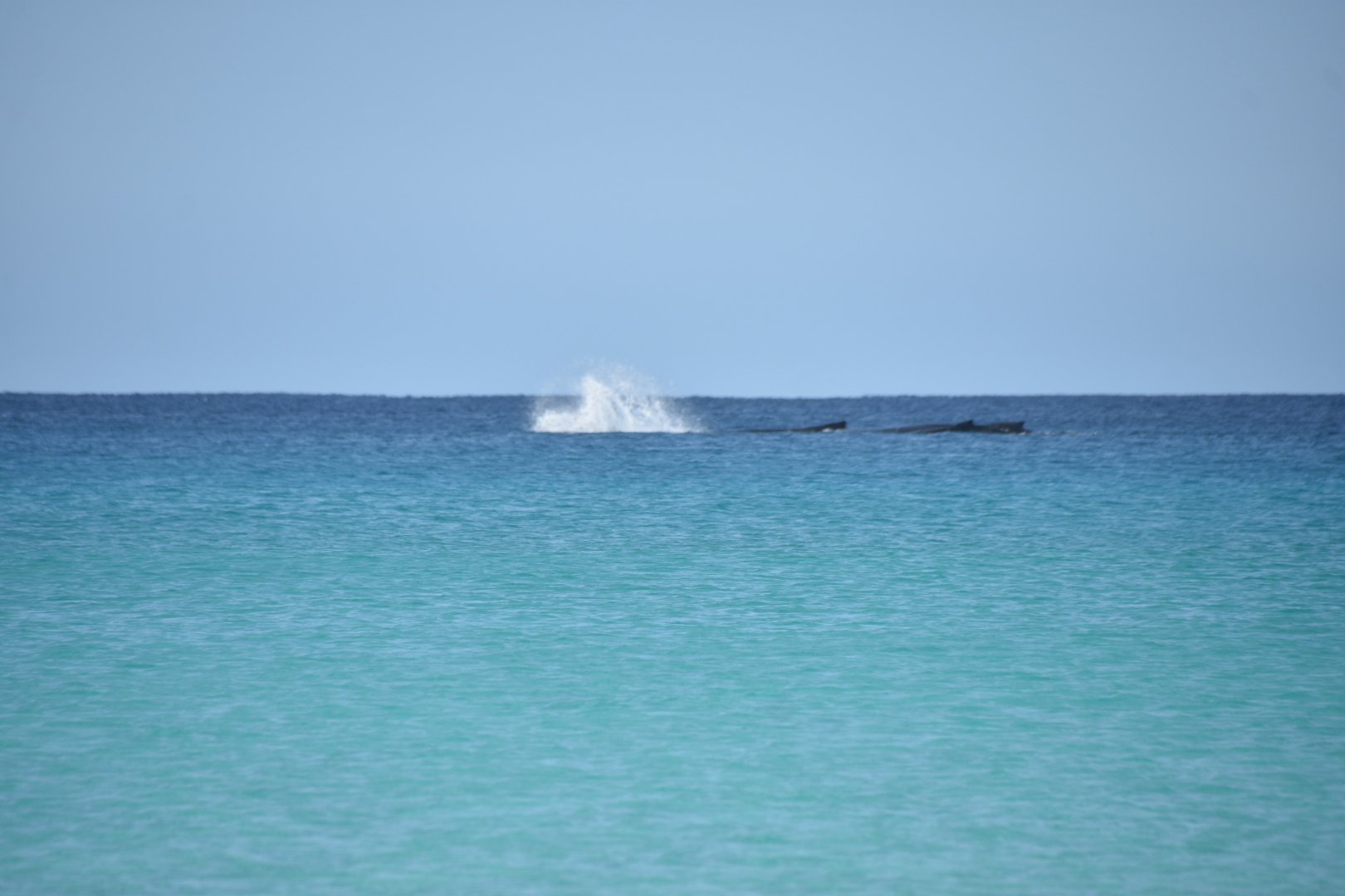 Aber das Highlight waren all die Wale, die zurzeit in der Bucht migrieren und dort mit ihren Kälbern herumspielen. Das sind Fotos von Buckelwalen. Die Flosse oben, sieht super klein aus, aber da ist ein riesiger Wal darunter.