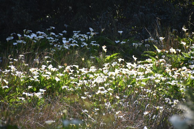 Auf dem Weg zur Bunker Bay mussten wir dann kurz anhalten, damit ich ein paar Bilder von diesen Kallas machen konnte. Die kosten in der Schweiz ja ein Vermögen und hier sind sie die reinste Plage. Wir finden sie nach wie vor schön. Aus all den Einfahrten hatten wir uns genau die zum Halten ausgesucht, in die etwa 4 Autos reinfahren wollten und wir waren natürlich voll im Weg…