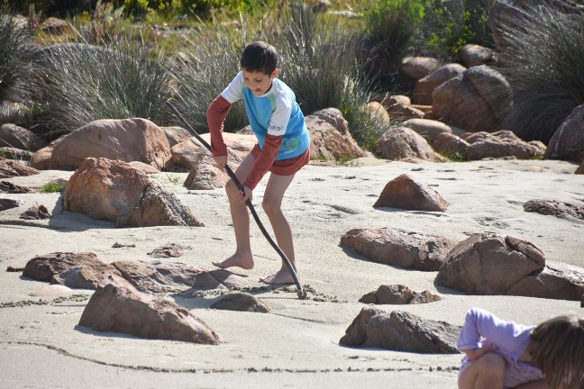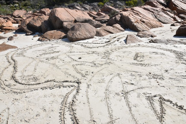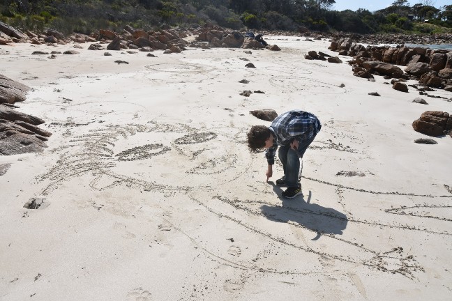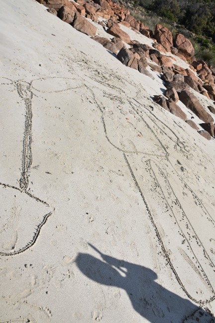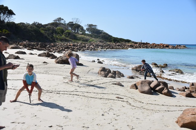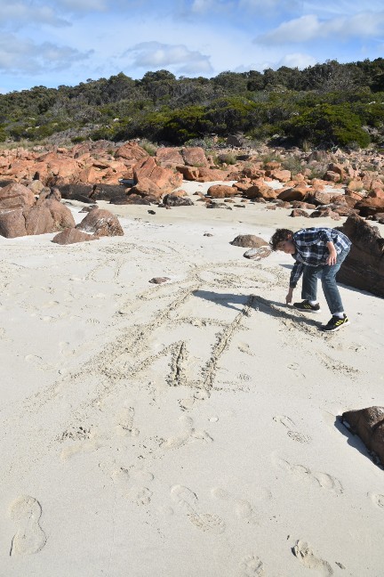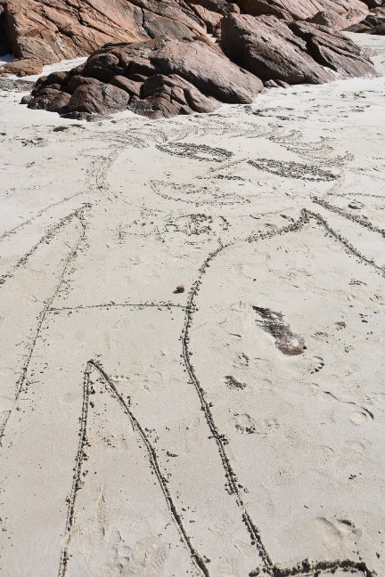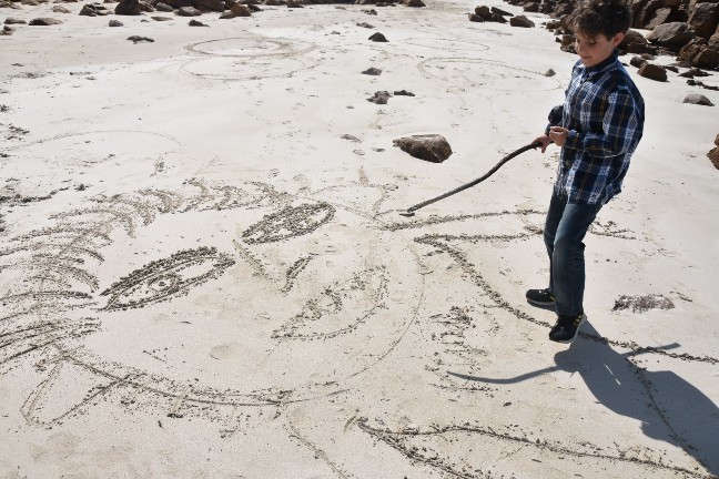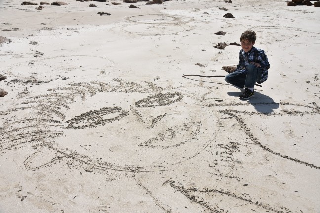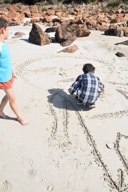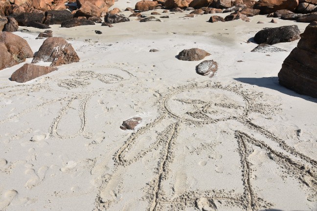 Die Kids wurden so richtig kreativ und zeichneten unsere ganze Familie. Ich weiss nicht mehr, wer wer ist, aber all unsere Familienmitglieder wurden im Sand verewigt.