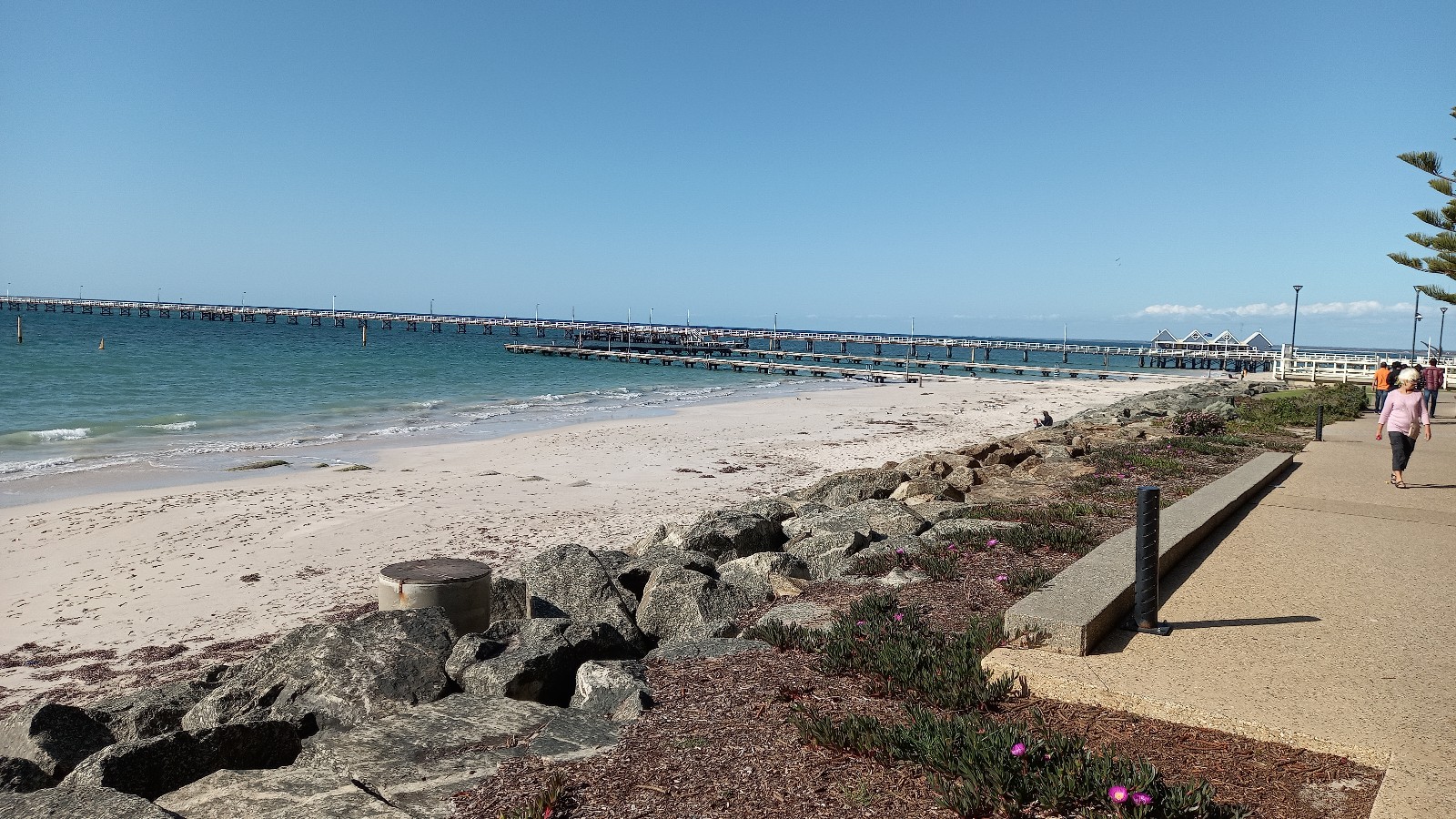 Am Donnerstag war ich wieder mit den Kids im Schwimmunterricht und anschliessend in einer Apotheke. Ich habe jetzt seit 1.5 Monaten die Nase voll. Haha… Voll verstopft… und was auch immer ich versuchte, es wurde und wurde nicht besser. Doch jetzt fing es an richtig weh zu tun in den Stirnhölen und Nebenhölen und so machte ich einen Termin für den Freitag in Busselton, denn ich musste nochmals arbeiten. Da bekam ich eine doppelte Ration Antibiotika, weil ich mir eine zünftige Sinusentzündung angelacht habe. Nachdem ich die Medis nahm, ging es mir hunds-miserable und wir gingen schon relative früh nach Hause. Doch zuerst nahmen wir noch eine Briese von der Meerluft. Nach einem so langen Winter tut der blaue Himmel und der Sonnenschein richtig gut.