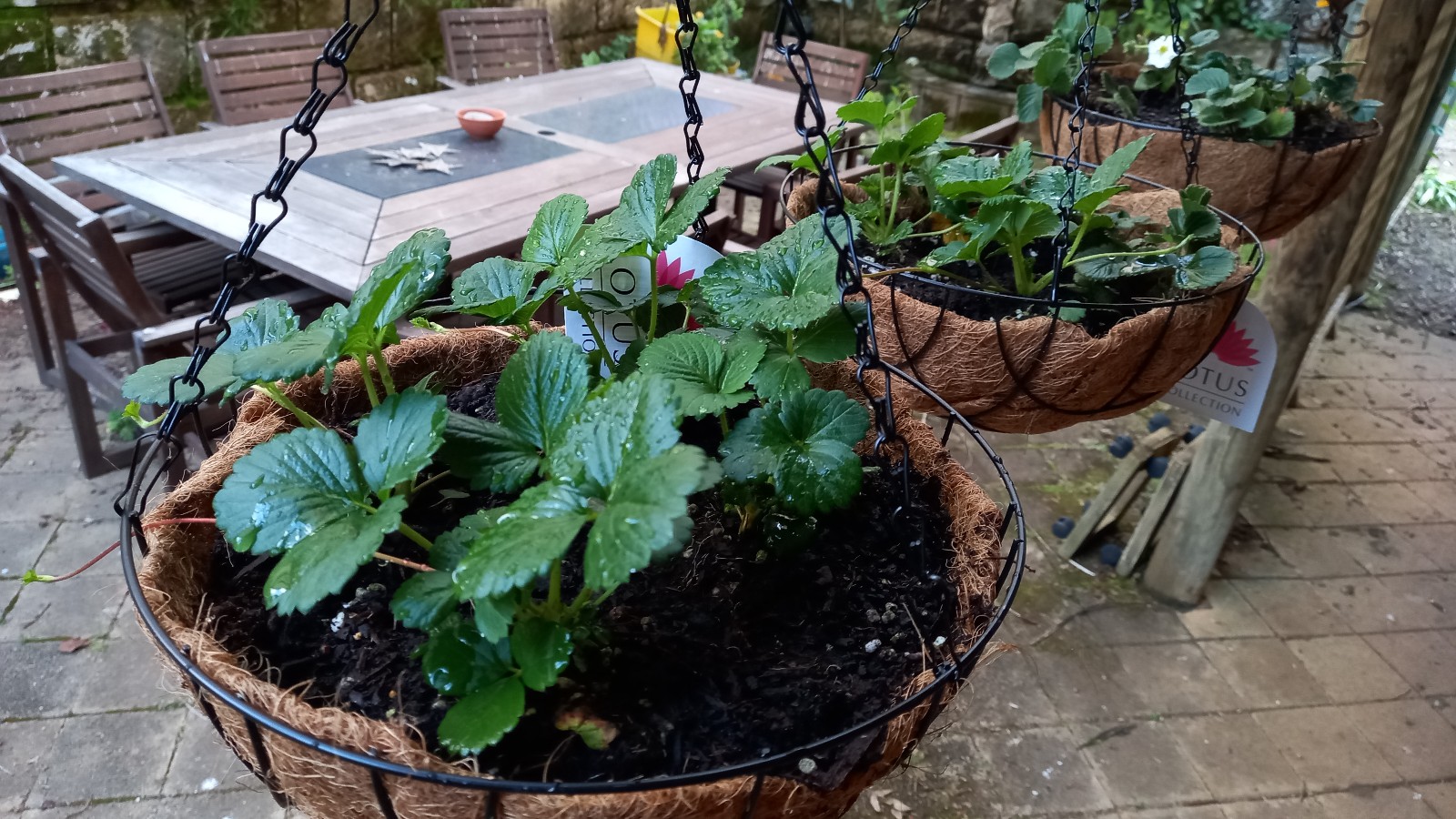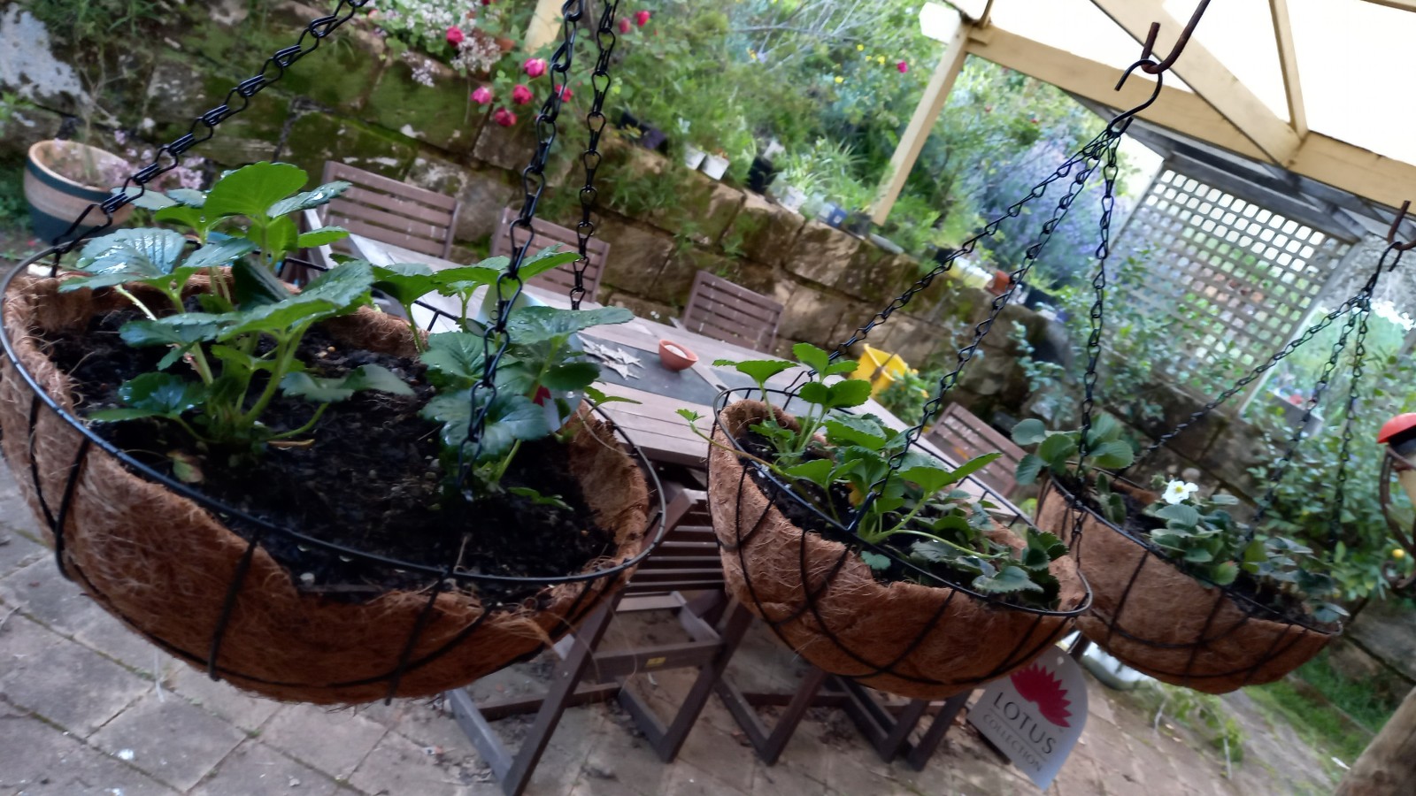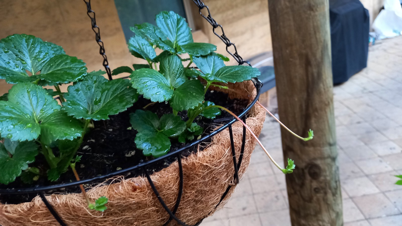 Am Samstag lag ich den ganzen Tag im Bett und es war mir so etwas von elend. Aber ich spürte, wie das Antibiotika half, denn es verschob sich alles in meiner Stirn, doch das machte mir noch mehr Kopfweh und schlecht war es mir auch. Am Sonntag fand ich dann heraus, dass ich Antibiotika und Schmerztabletten zusammen nehmen konnte und das linderte alles dann ein bisschen und liess mich sogar etwas im Garten arbeiten. Ich will mal probieren, die Erdbeeren aufzuhängen, damit sie nicht faul werden und nicht schon Schnecken gefressen werden. Mal schauen wie das wird. Es hatte noch etwa 4 überlebende kleine Plänzchen im Garten und die wurden gleich mit gesetzt.